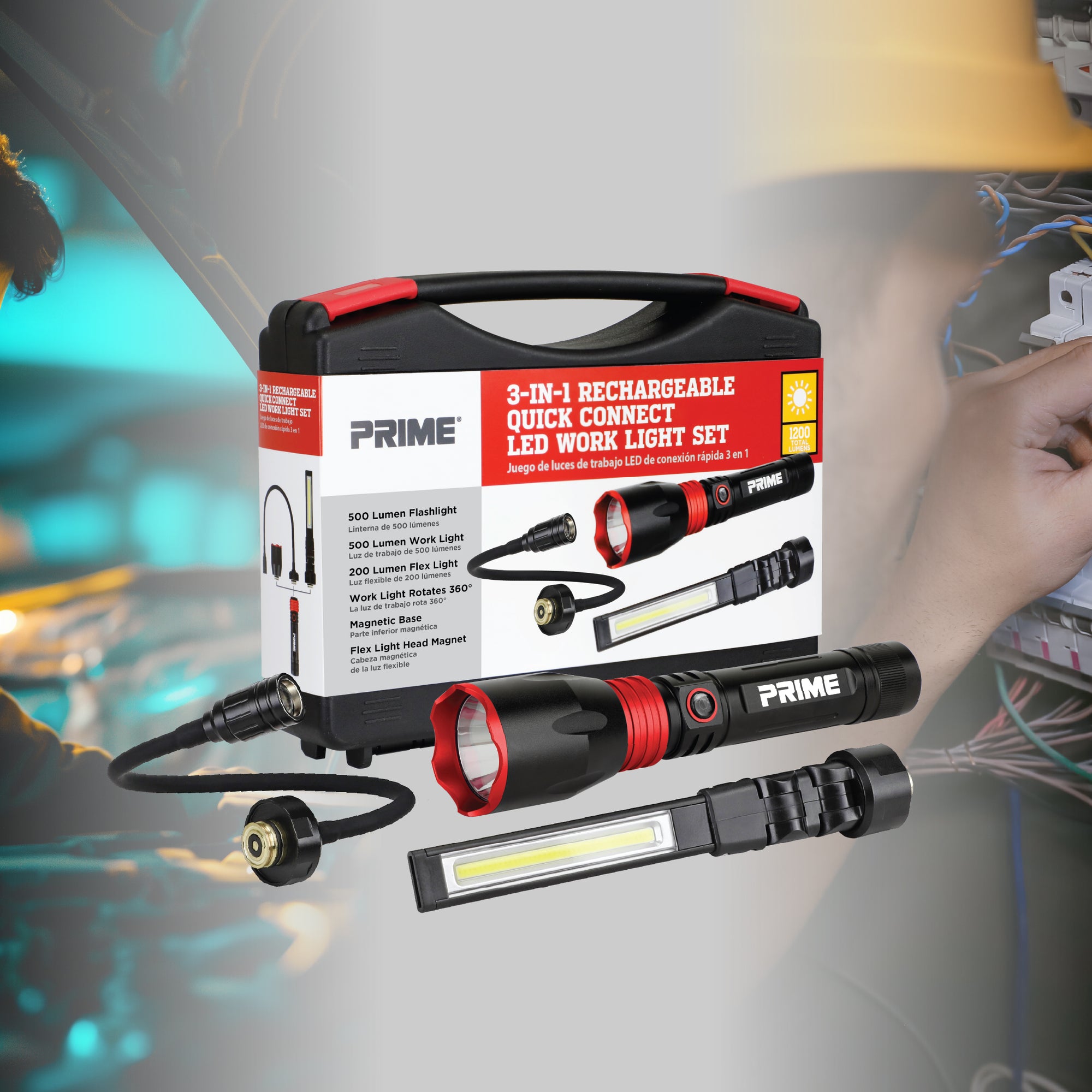 This rechargeable quick connect LED work light has it all: Three Interchangeable super-bright quick connect heads. Flexible neck with 200Lm LED wo...