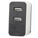 This 3 port USB Charger is great to save space, takes only 1 AC outlet. It has 2 - USB-A ports and 1 - USB-C  2.4 Amp total. USB charger built so it will only use 1 AC outlet and charge 3 items!
